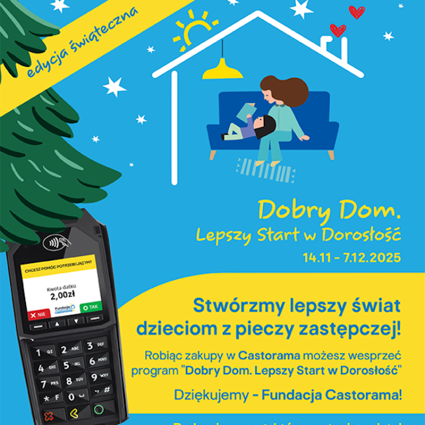 Robiąc zakupy w sklepach Castorama od 14 listopada do 7 grudnia 2025, możesz spełnić marzenie dzieci i młodzieży z pieczy zastępczej o remoncie ich pokoi, domów i miejsc, w których dorastają.